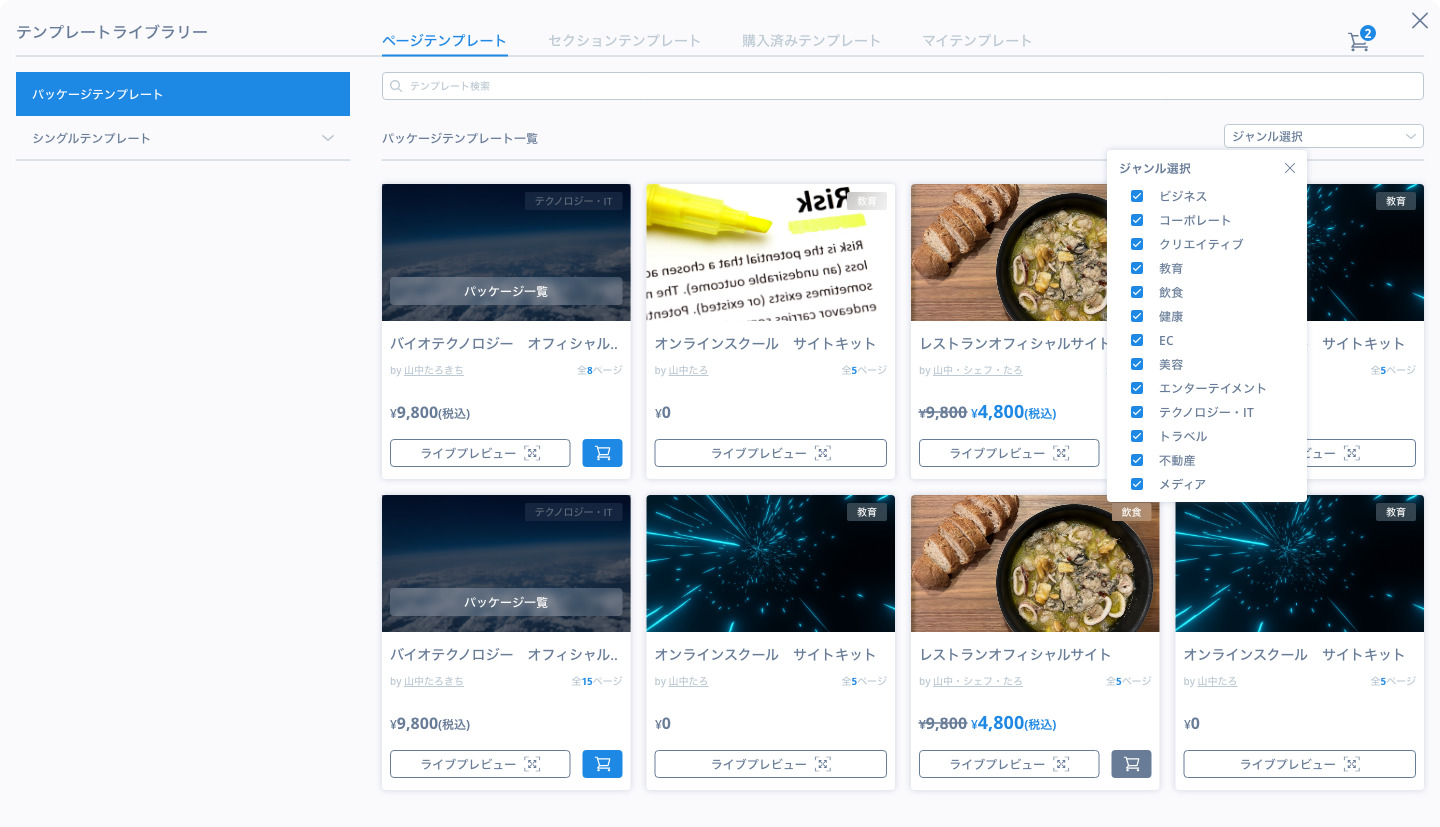 誰でもテンプレートからカンタン制作することができます。また、Webデザインを生業とする企業はテンプレートをパッケージ販売することができ、デザインができない事業者に対しての問題を解決することができます。