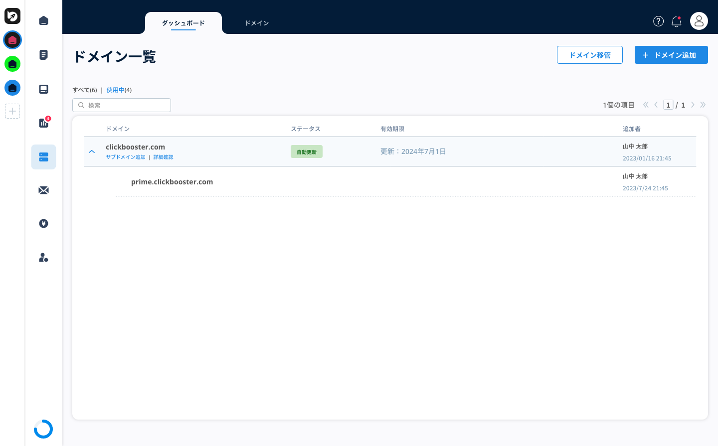 もちろん、外部取得したドメインも紐づけることができ、カンタンにClick Boosterの利用をスタートできます。